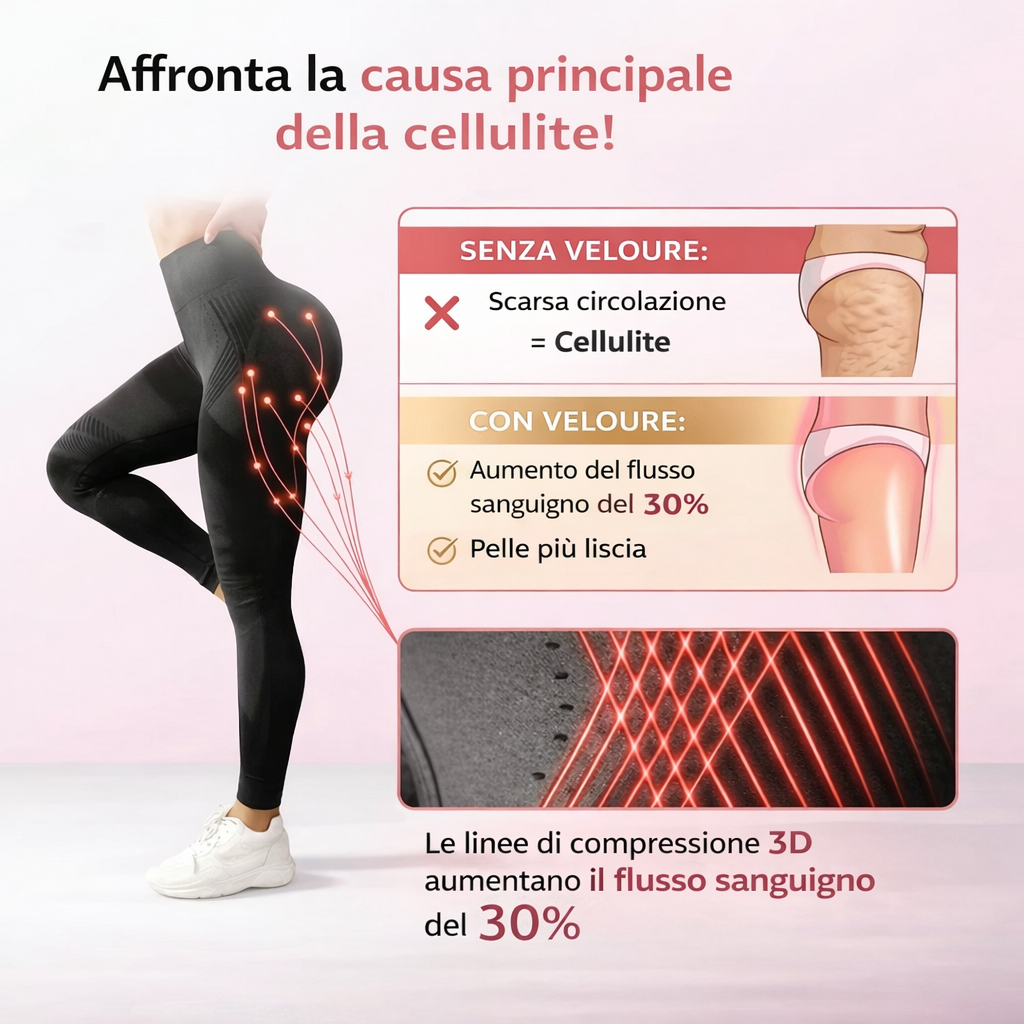 Hai speso soldi in creme, massaggi e diete, ma niente sembra funzionare. È perché la maggior parte delle soluzioni agisce solo in superficie. La vera causa della cellulite è la scarsa circolazione sanguigna sotto la pelle.I leggings 3D brevettati Vèloure funzionano diversamente.